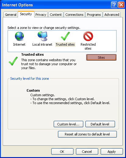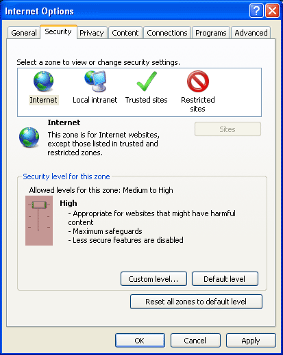 | Security Settings Help If your browser security is set too high you will keep getting returned to the login page. To check this in Internet Explorer: